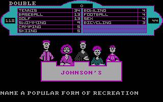 The family playing the board is given up to three incorrect guesses to match all of the survey's responses. Points are awarded based on the number of people who responded with each answer. The excitement peaks when the family with most points selects two members of the family to play a fast money game against the clock. Softie's computer version is quite faithful to the original show, although replay value is questionable because I always seem to get the same questions each time. The excitement of seeing family members help each other on the show is, naturally, missing in the computer version, but with hundreds of questions and fun endgame, Family Feud will keep trivia fans happy. Fans of the TV original will probably be disappointed, though. In 1989 Softie released a sequel, All New Family Feud, which features (very ugly) extended EGA graphics but many more questions than the first game.