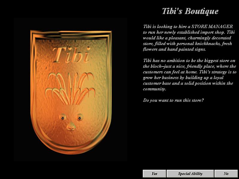 Once you learn all the aspects of the game, you then need to strategically use and combine them to make the biggest profit possible in the shortest amount of time. You will learn which products have the largest profit margins, which ones are lemons (different in each game), what price to set for them, and how much to stock. Employees salaries' must be set, unions negotiated with, and store image to maintain. Natural and non-natural disasters will also strike frequently, so be prepared to insure your business against the worst. Mudslides and floods can damage your store, but so can theft and sabotage. Of course, good things can happen to you as well. Business opportunities and deals may be offered to you at any time. There are six different stores in the game, you select which one you will manage in the beginning of the game. Each particular store has it's own specific advantages and disadvantages. The remaining five will be your competition for the duration. The game has multiple difficulty settings, and each opponent store has an adjustable intelligence quotient.