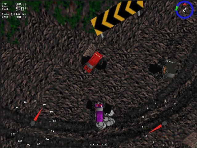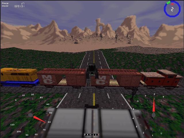 Gameplay is very simple to get the hang of. The computer can be told to shift gears automatically so that the only player control is over steering and acceleration. There are different choices of detours and off-the-course routes that can be taken, in fact, the most enjoyable thing to do is steer off the beaten path only to come out farther ahead on the course than the other trucks. When they catch up, everyone jockeys for the first place position in a free-for-all of collisions and side-swiping. The dust literally flies and the beautifully rendered sounds of crunches and grinding metal is truly gratifying to he who is stressed out by life. Again, this is a great game to play when one needs only a short time for some excitement.