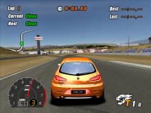 The damage system should be something that people get in a frenzy about - while bumpers hang off nicely from scrapes and bashes, lights pop and windscreens shatter, everything falls foul of an energy bar system. Now - I'm not whining because after a few severe prangs you are automatically retired. Oh no. I'm whining about the fact that Alfa Romeos do not seem to be able to negotiate grass or pavements without the engine exploding. And judging by this performance the grass/pavement-induced explosion would probably kill 30 people in the area. Though, that is, of course, mere speculation. Is it not a bad advert for the car when it can't handle terrain other than asphalt without the engine committing hari-kari? It would seem not, at least not in the view of whichever Romeo bod oversaw this bad boy.